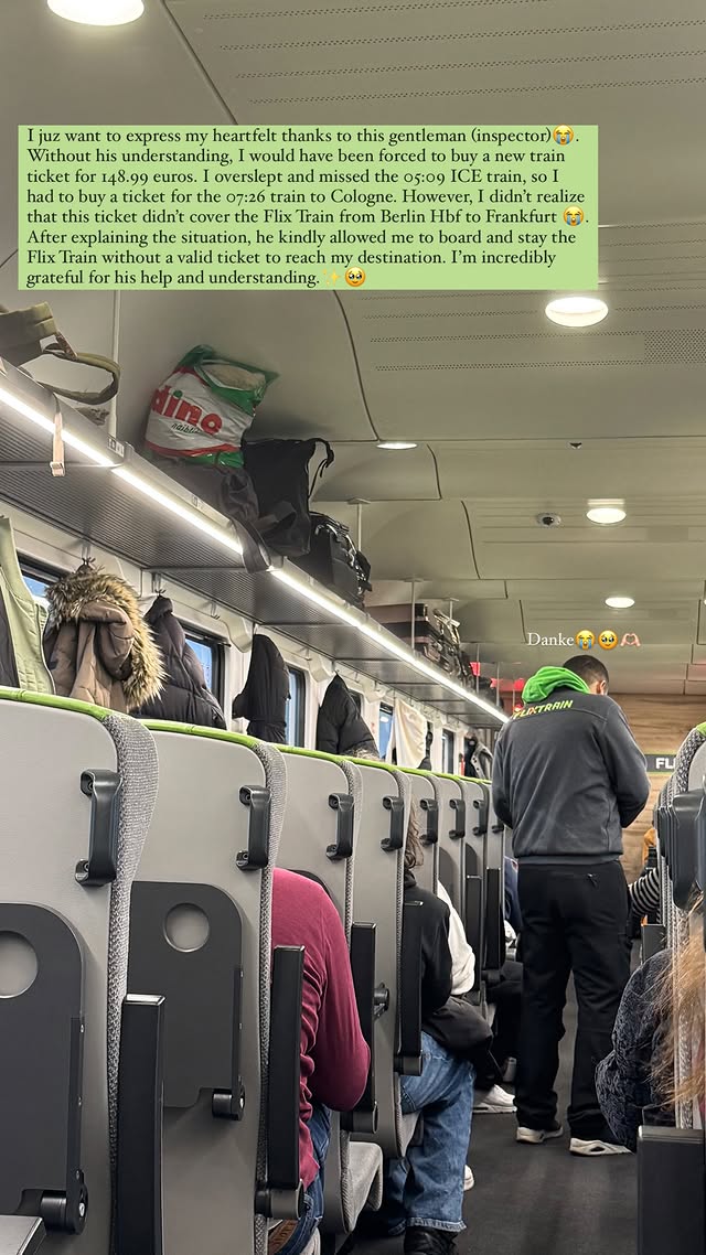 The drama intensified when I scrambled to buy a €35.99 replacement, not realizing it was a FlixTrain ticket valid for only one part of the journey. I got lucky with a compassionate conductor who saw I was a student and helped me figure out the rest of my route instead of giving me a hard time. Always check your ticket details!
