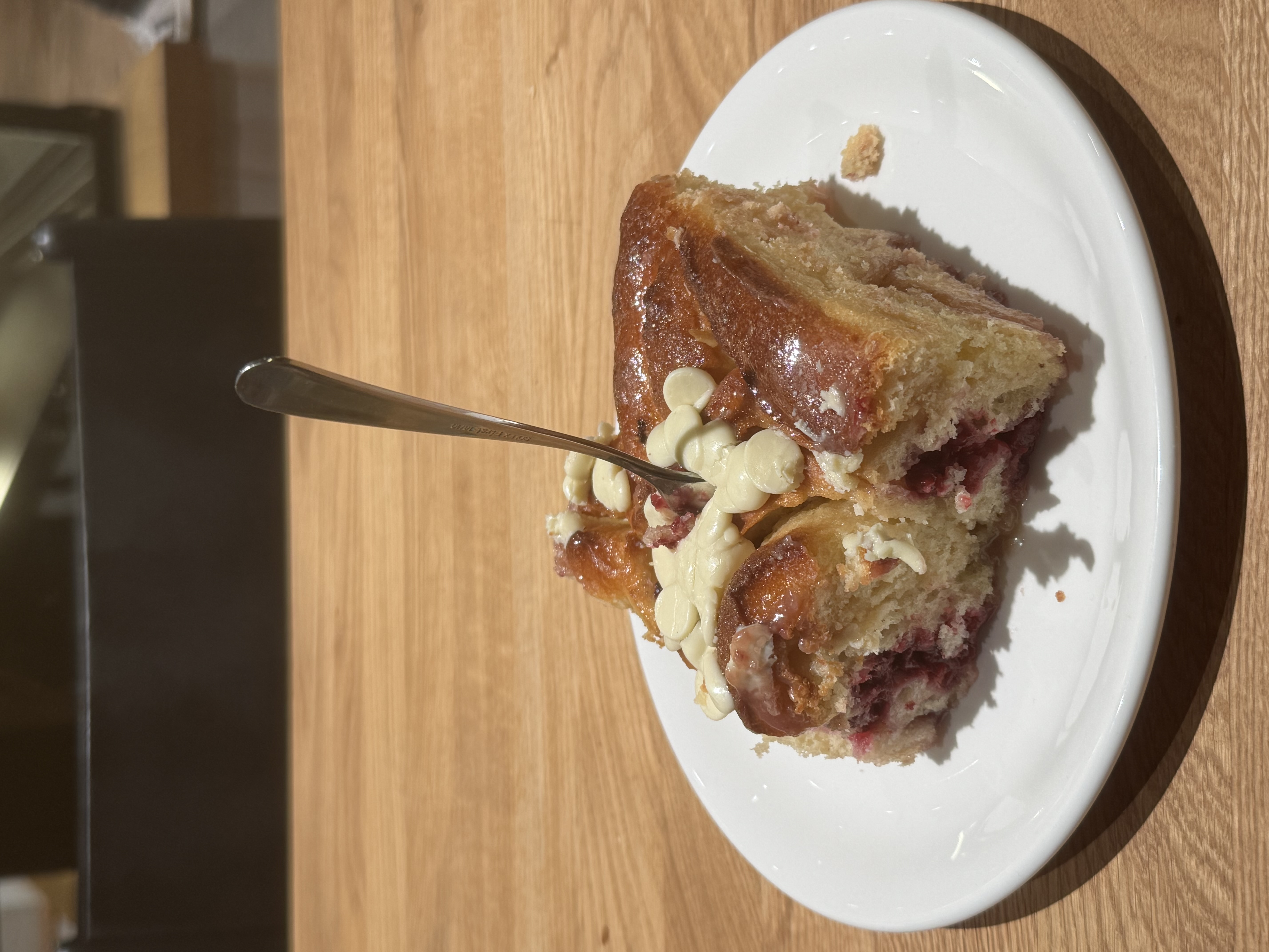 🥐 Bakery Lovers' ChoiceI ordered the Weiße Schoko-Himbeer-Schnecke (white chocolate raspberry swirl bun). Made from a light yeast dough with buttermilk, topped with smooth white chocolate and juicy raspberries. It’s light, moist, and baked in a sheet pan—if you love a good bakery, this is definitely for you.