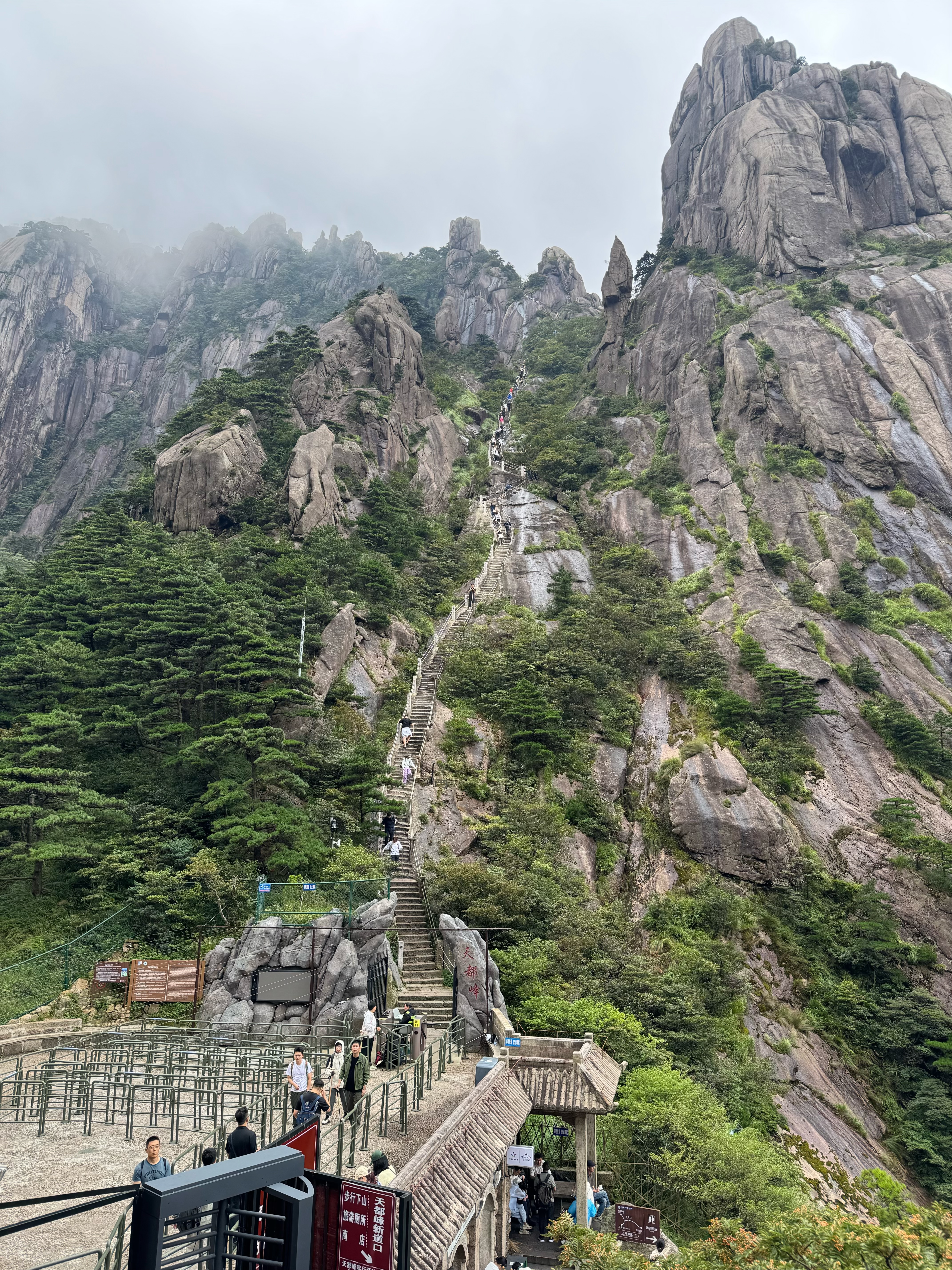 Certain peaks (especially 天都峰) have daily capacity limits and close early if weather turns bad. I arrived at the 天都峰 entrance at 12:40 PM and the counter was already closed due to thunderstorms. Book in advance.