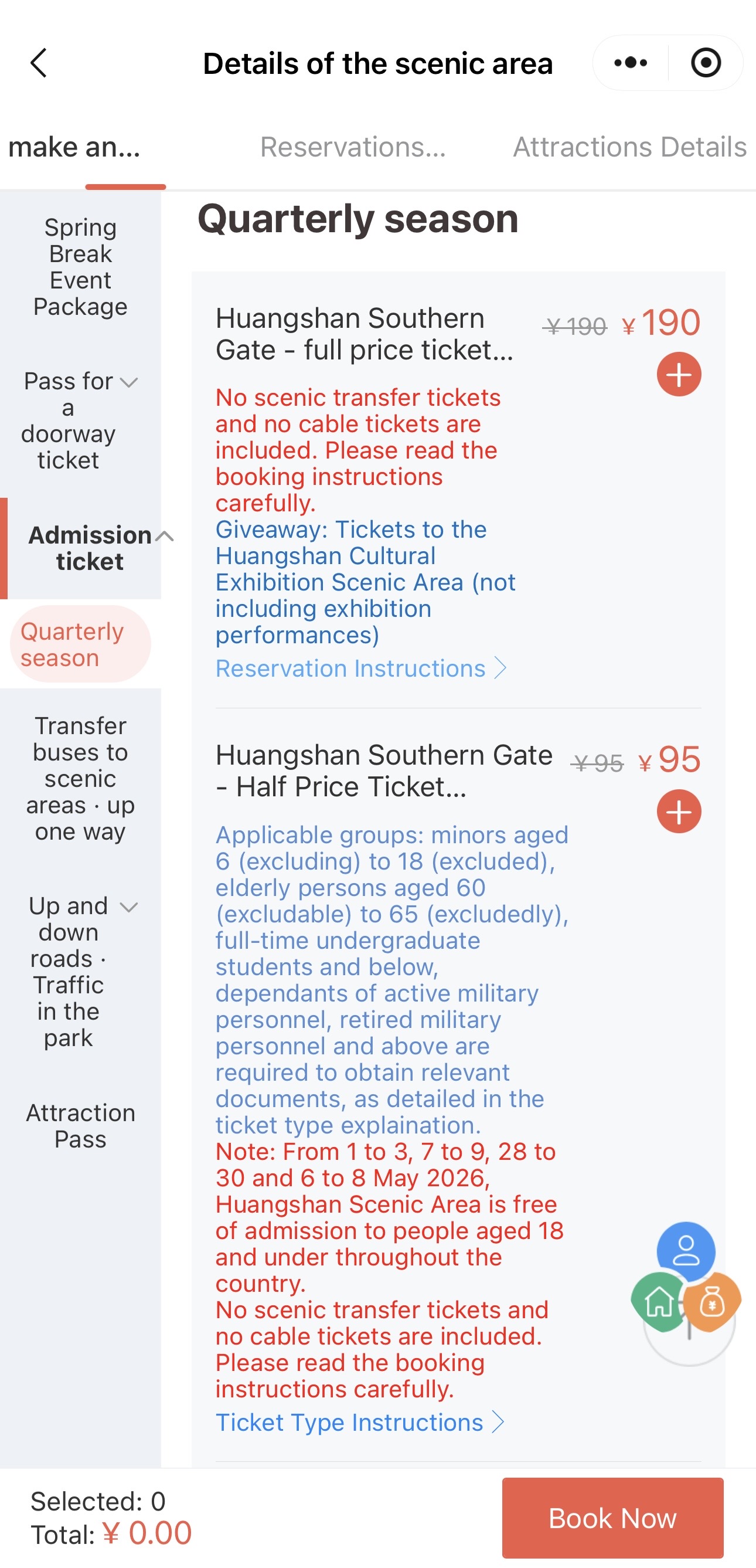 If you want to visit Celestial Capital Peak (天都峰), book that timed slot here too — it sells out and closes early during bad weather.
