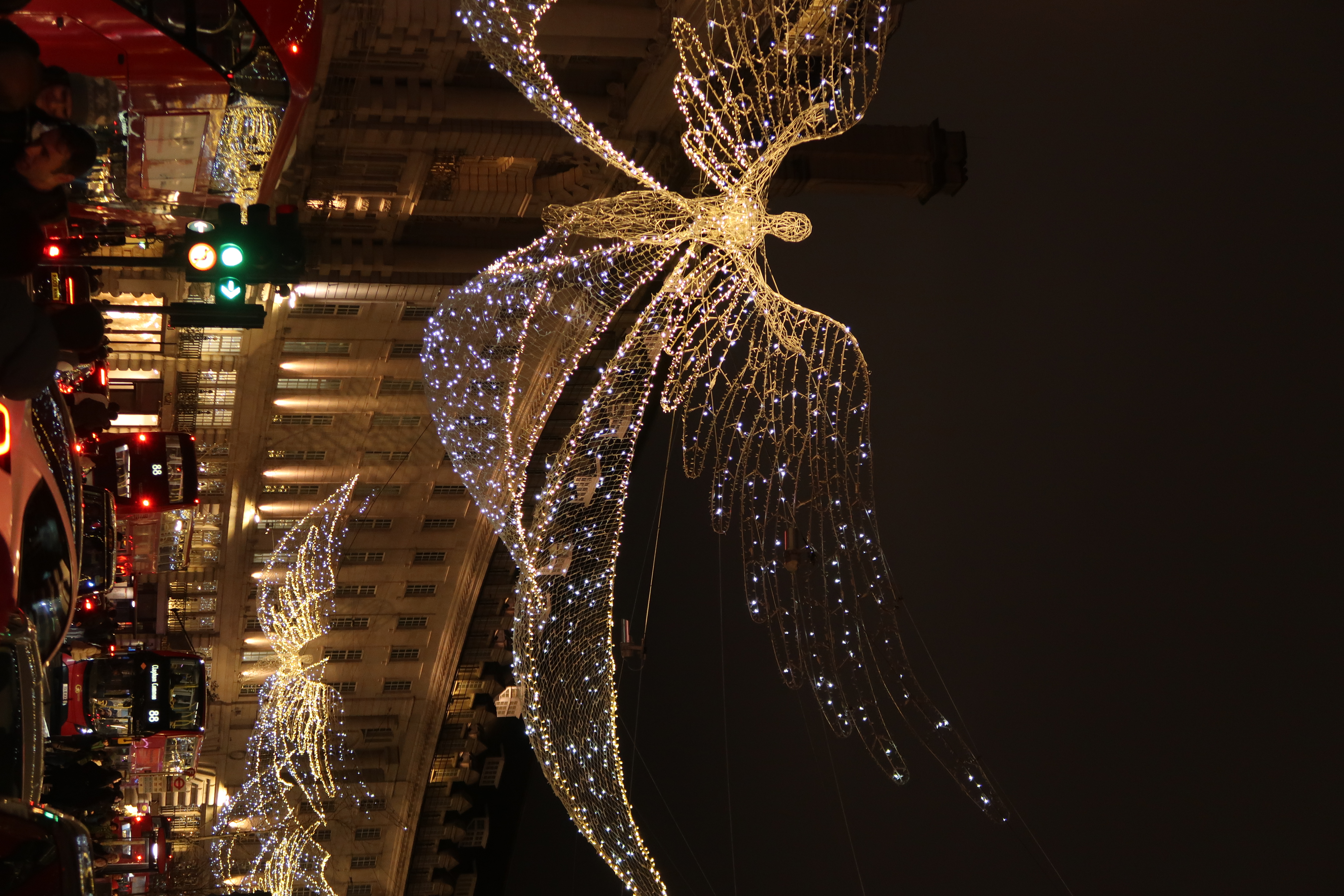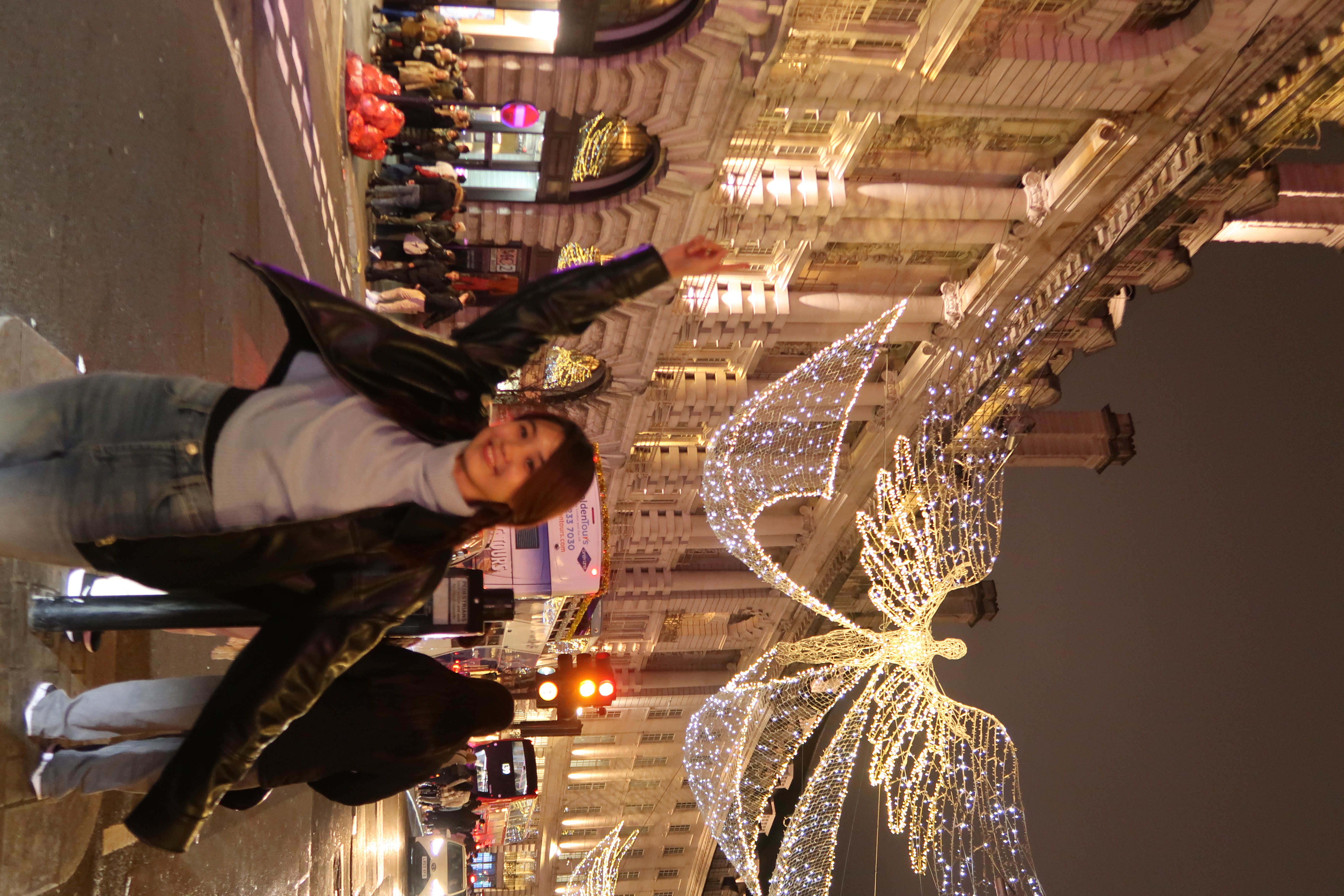 Evening stroll through Henrietta Street and Regent Street, soaking in the holiday lights before heading back around 11:40 PM.